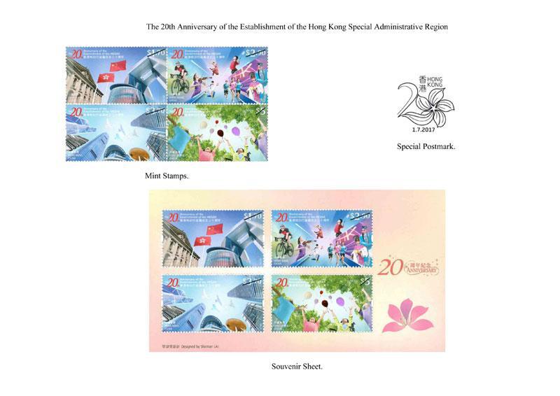 1 июля в ознаменование 20-летия создания Специального административного района Гонконг была выпущена серия из четырех памятных марок.