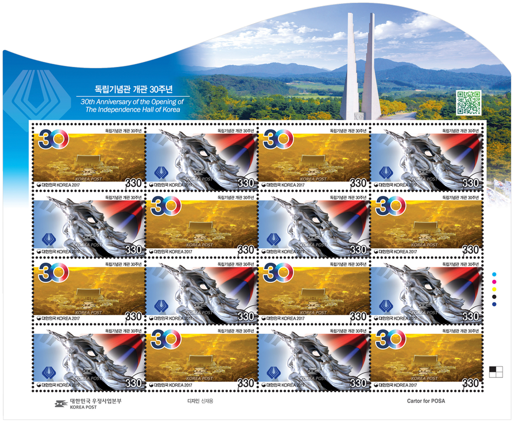 1 августа почта Кореи выпускает памятную марку в честь 30-летия открытия Музея Независимости Кореи.