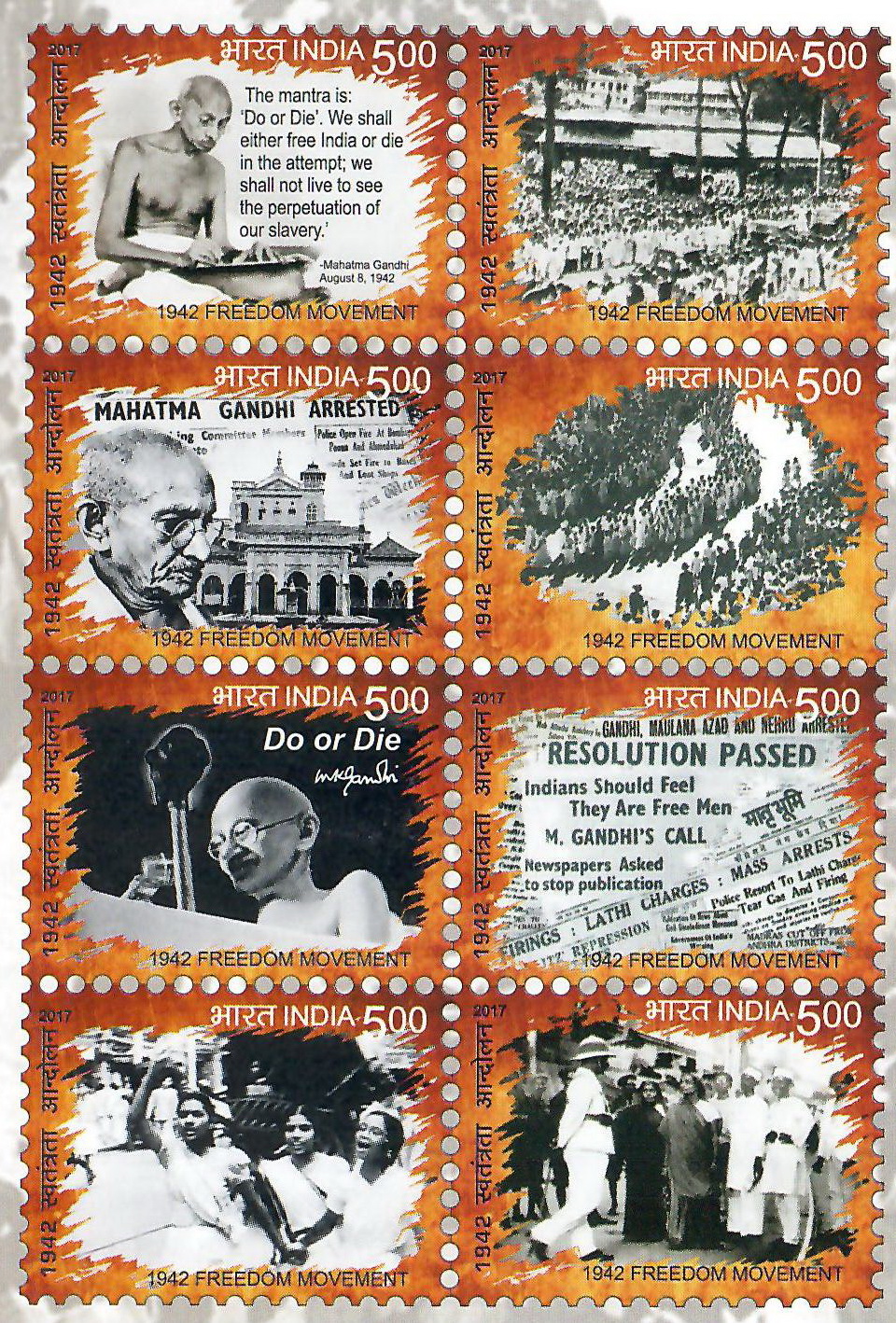 9 августа почта Индии выпустила серию "1942 Продвижение Свободы" (1942 FREEDOM MOVEMENT)