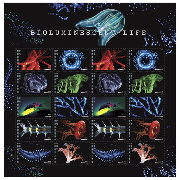 22 февраля USPS анонсировала выпуск интереснейшей серии из 10 марок "Биолюминесцентная жизнь".