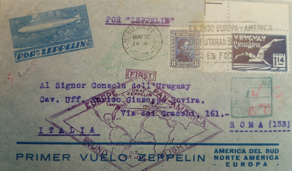 Тип 2, вариант А. Почта дирижаблей. Уругвай – Италия. Май 1930 г.