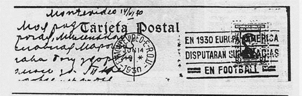 Кстати, корифеи советской футбольной филателии М. Левин и Е. Сашенков в книге «Футбол в филателии» вообще ничего не написали по поводу штемпелей к чемпионату мира 1930 года, заметив лишь, что «почтовое ведомство Уругвая на этот раз воздержалось от выпуска марок».