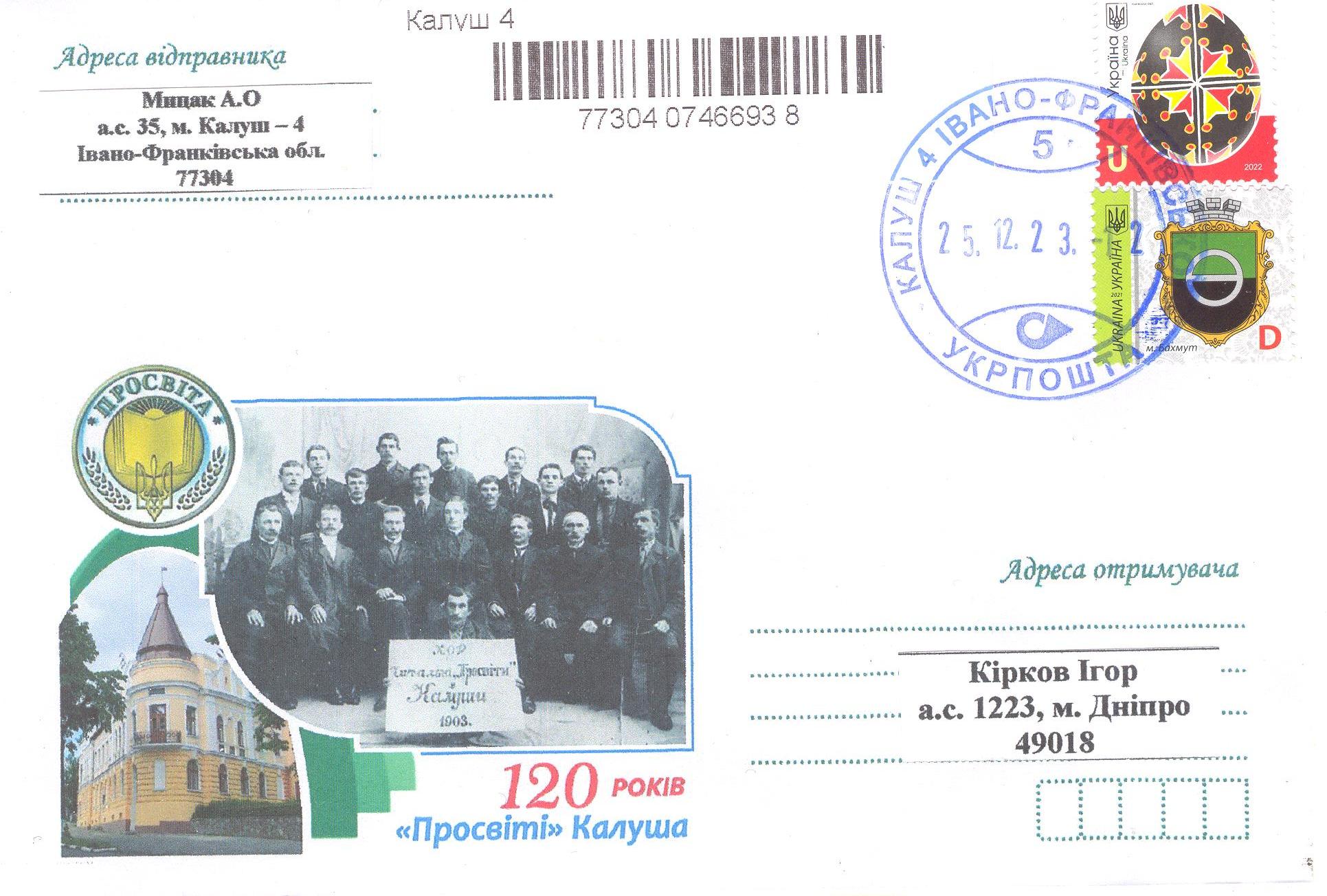 Філателісти Калуша відзначили 120-у річницю створення «Просвіти» випуском художнього немаркованого конверта (дизайн Олександра Власюка).