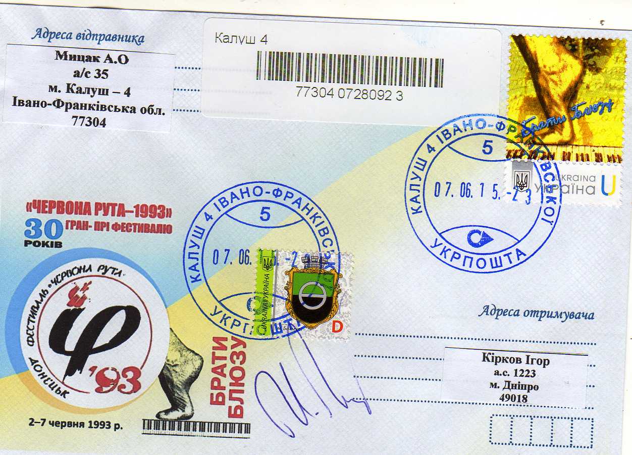 Філателісти Калуша відзначили 30-ти річний ювілей здобуття Гран-Прі фестивалю «Червона Рута -93» рок-гуртом «Брати Блюзу» випуском художнього немаркованого конверту (дизайн Олександра Власюка) і власної марки