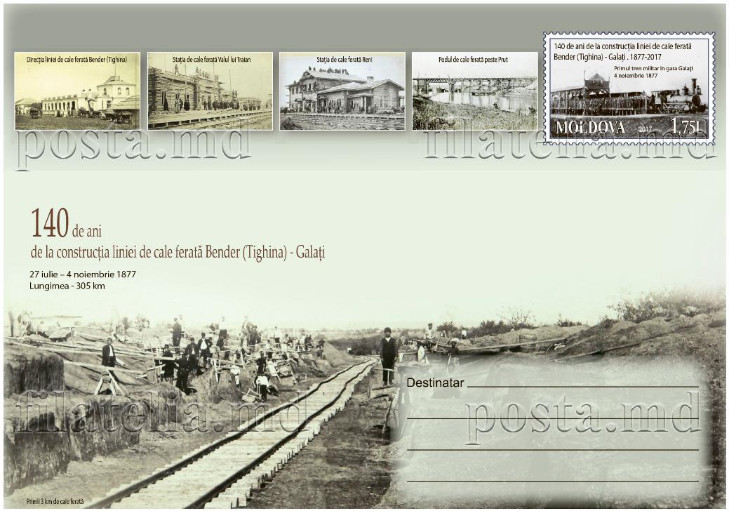 27 июля почта Молдовы выпускает конверт с фиксированной почтовой маркой "140 лет со дня открытия железной дороги Бендер (Тигина) - Галаць"