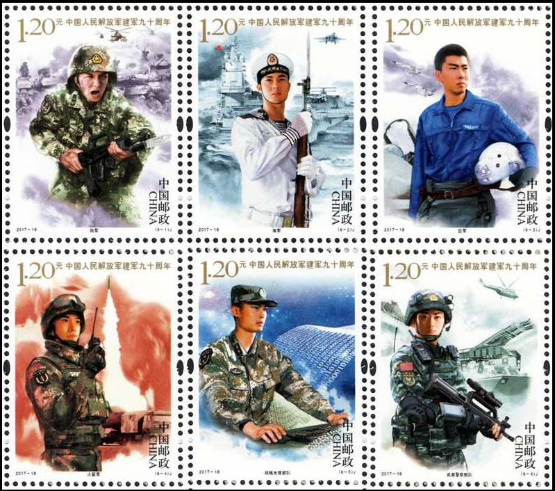 1 августа почта Китая выпускает серию "90 лет со дня образования Народно-освободительной армии Китая"