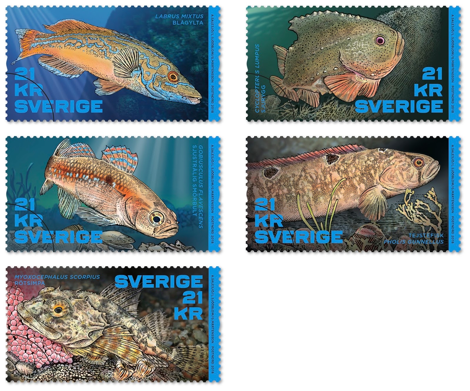 3 мая почта Швеции выпустила "рыбную" серию из 6 марок.