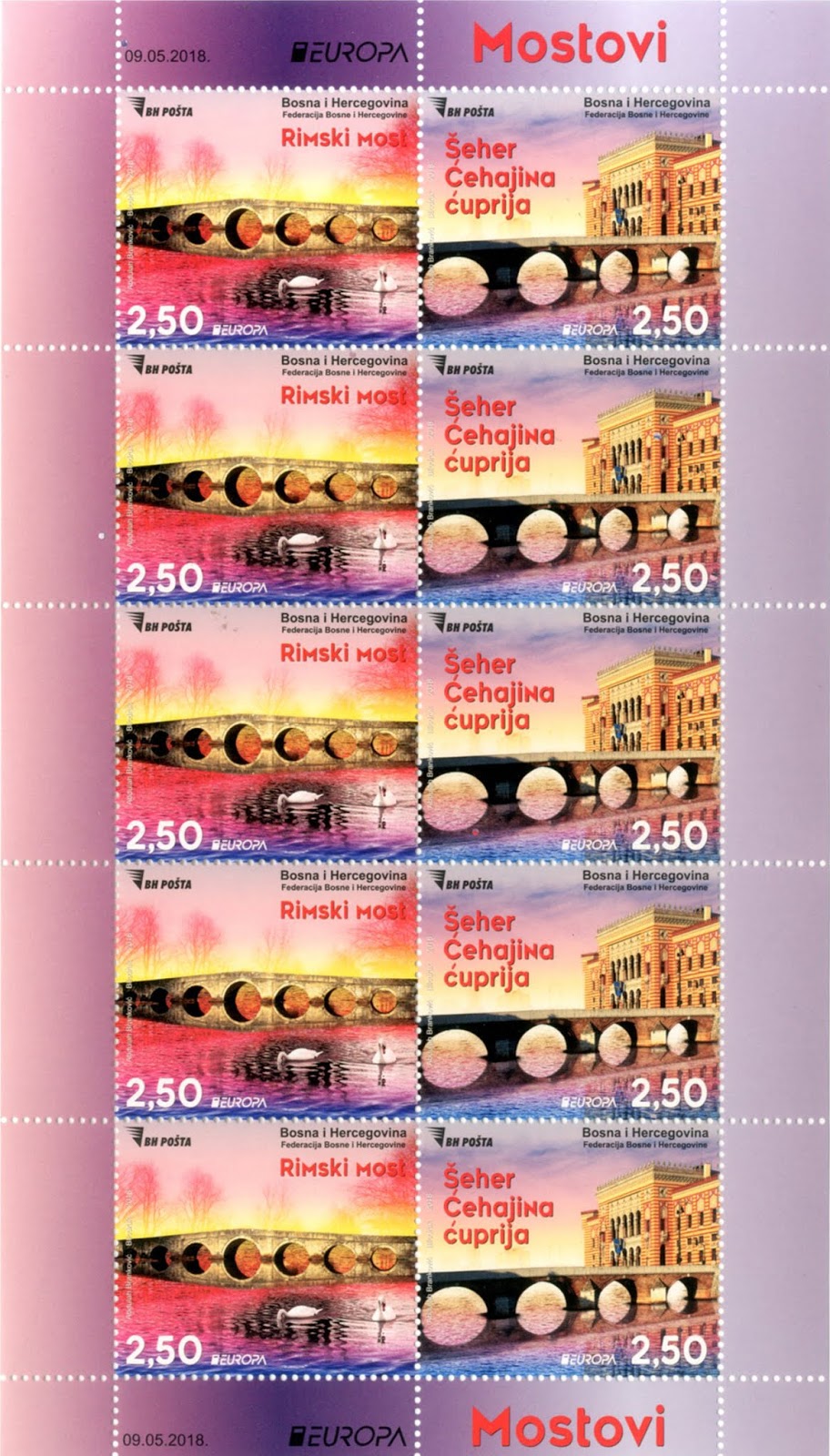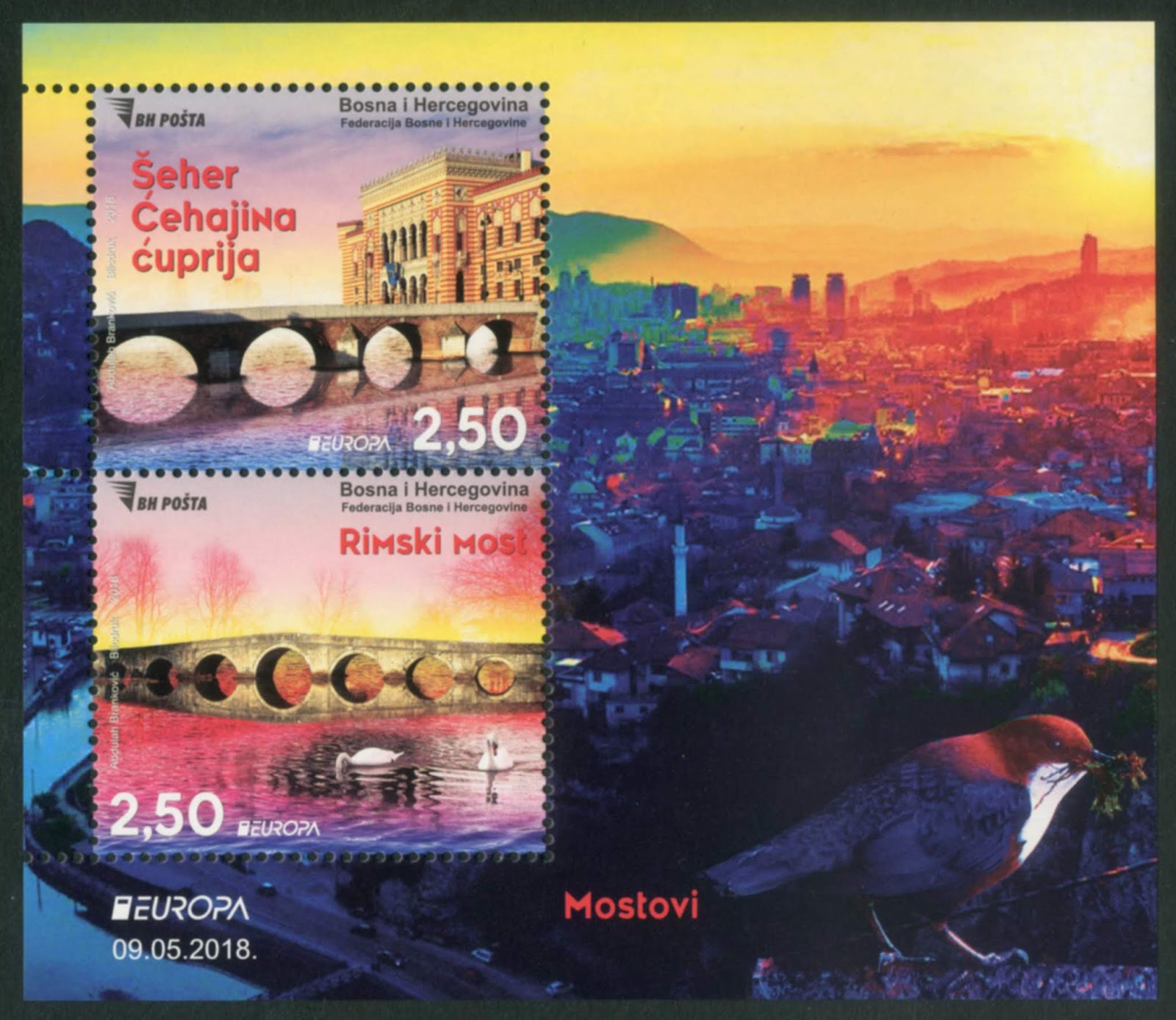 9 мая вышел выпуск в рамках европейской серии МОСТЫ. В составе выпуска 2 марки с изображениями Шехер-чехаин моста и Римского моста в Сараево.
