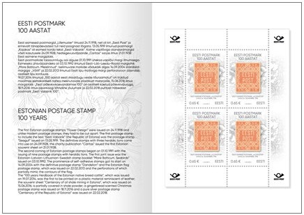 13 июля в честь столетия выпуска первой марки независимой Эстонии почтовая служба этой страны подготовила сувенирный комплект.