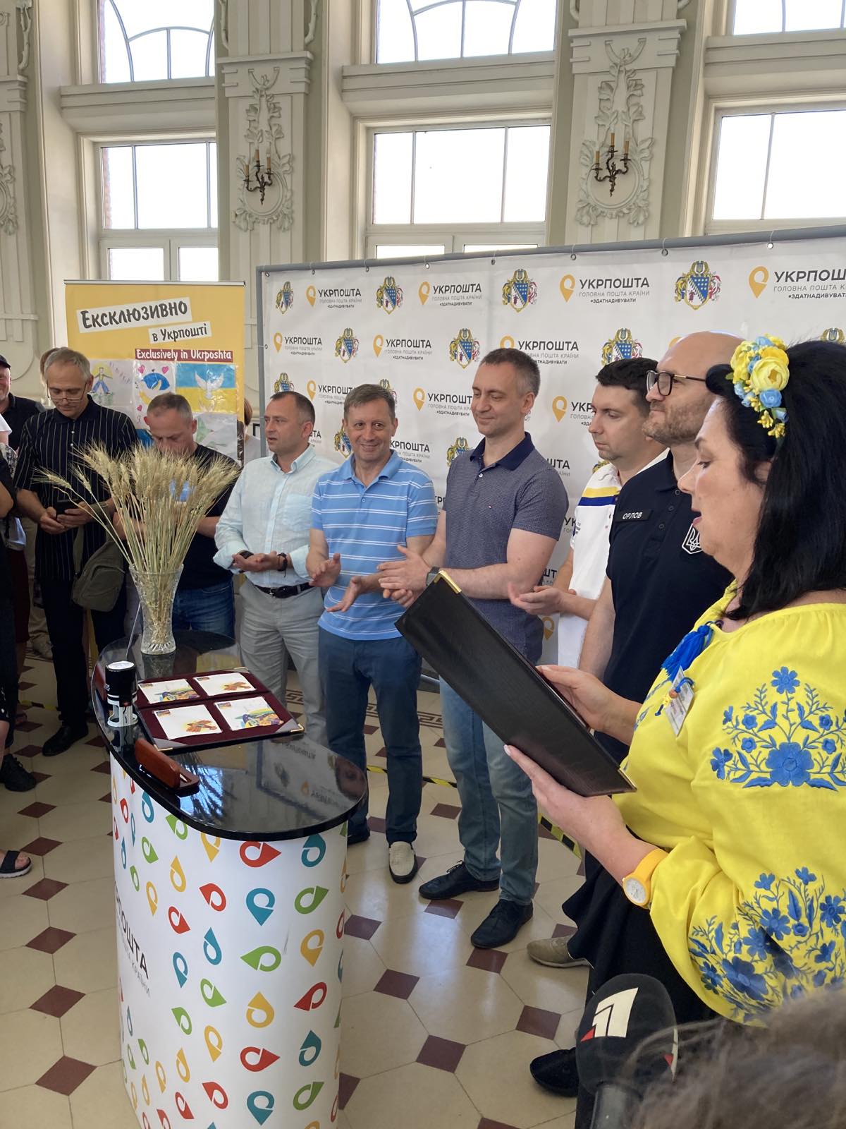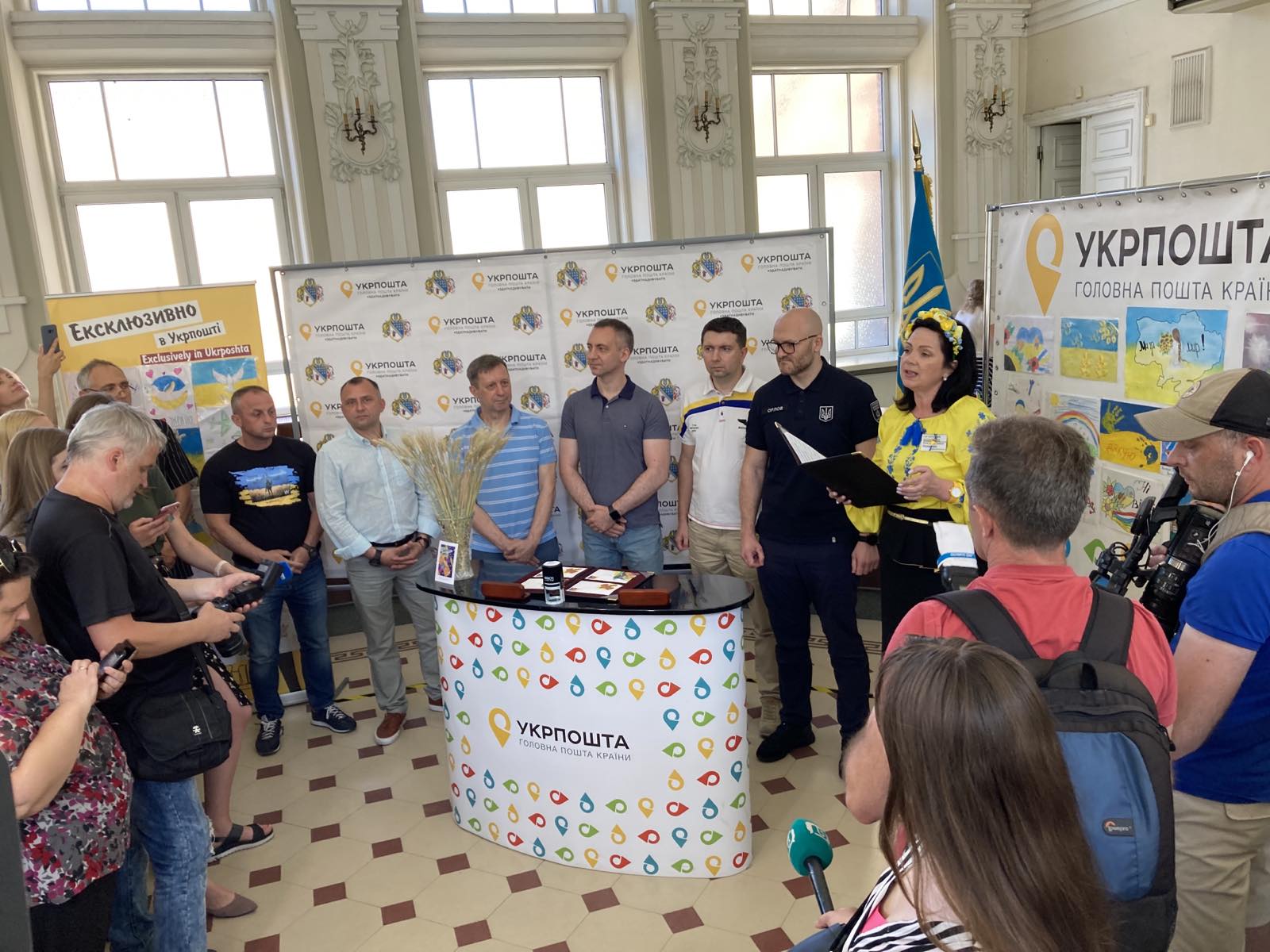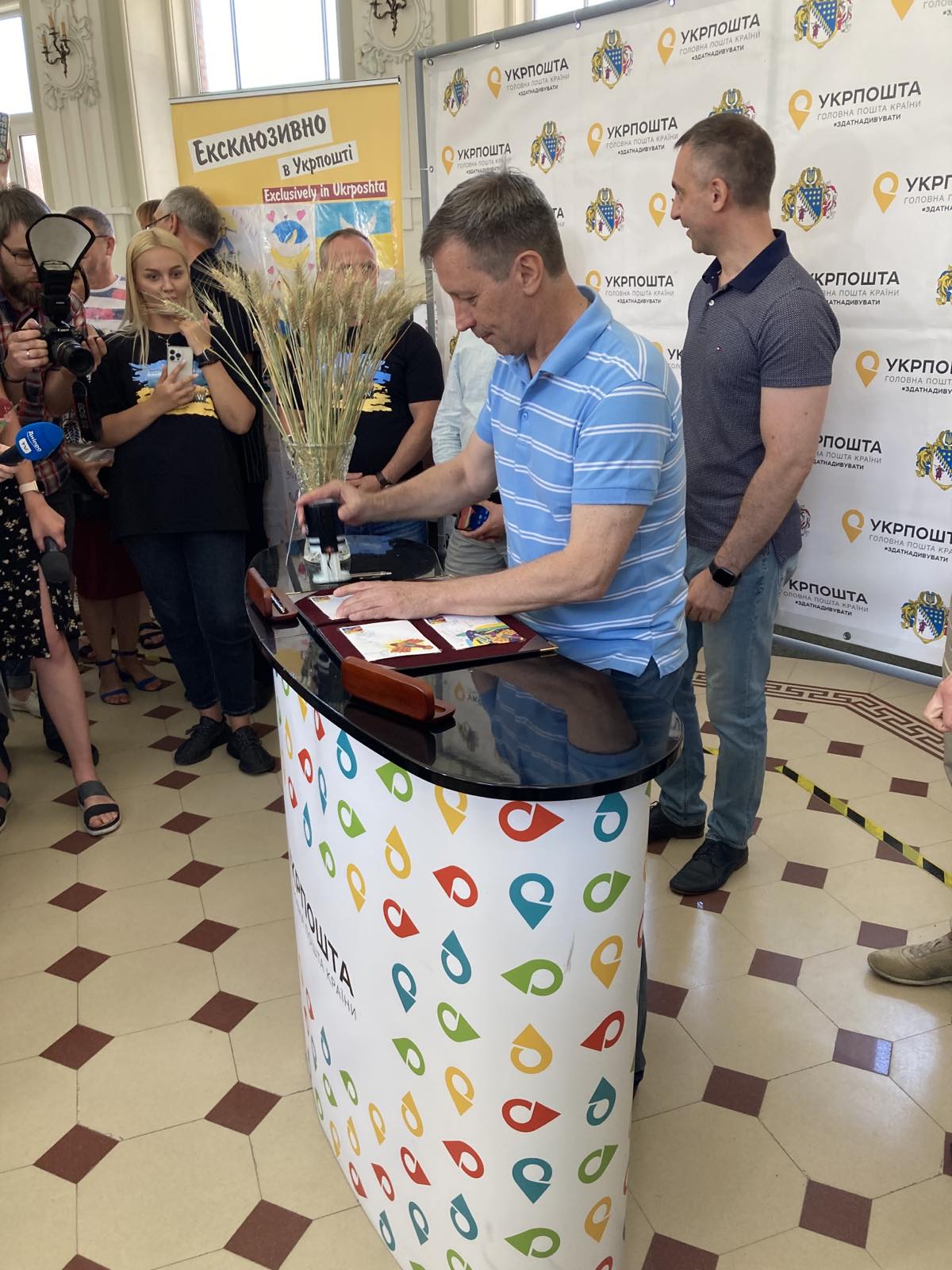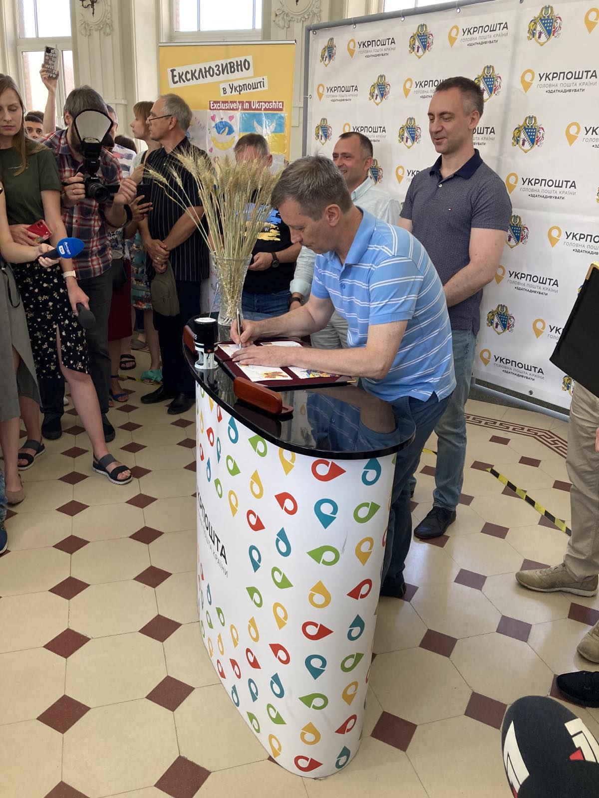 В 12.00 на главпочтампе состоялось спецгашение почтовой марки "УКРАИНСКАЯ МРИЯ"