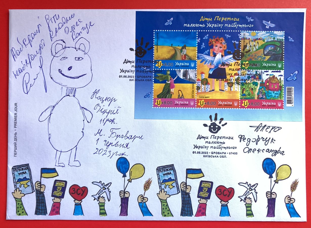 1 червня 2023 року АТ «Укрпошта» був введений в поштовий обіг благодійний випуск поштових марок «Діти Перемоги малюють Україну майбутнього». Випуск приурочений до Дня захисту дітей та присвячено дітям, які опинилися в епіцентрі жорстокої війни.