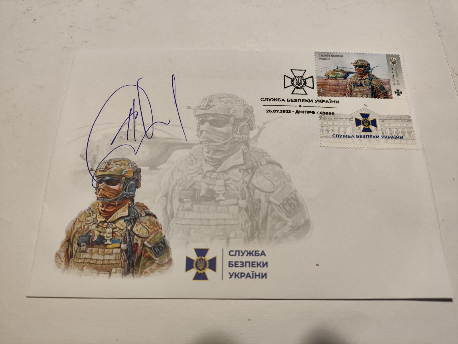 Конверт зі спецпогашення "Перший день" м.Київ та конверт із спецпогашення м.Дніпро та підписом начальника Дніпропетровської обласной військової адміністрації Сергія Лисака.