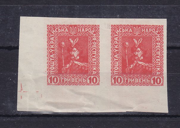 1920г. Венская серия. Богдан Хмельницкий. Пара. Без зубцов. Двойной абкляч с обратной стороны.